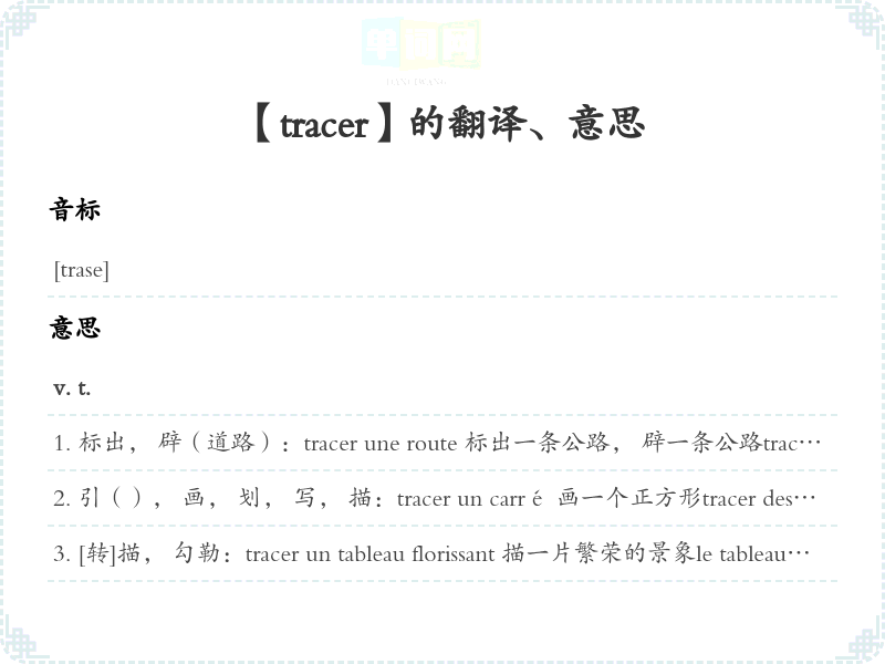 【tracer】 助记:、 派生:、 近义词: 联想词