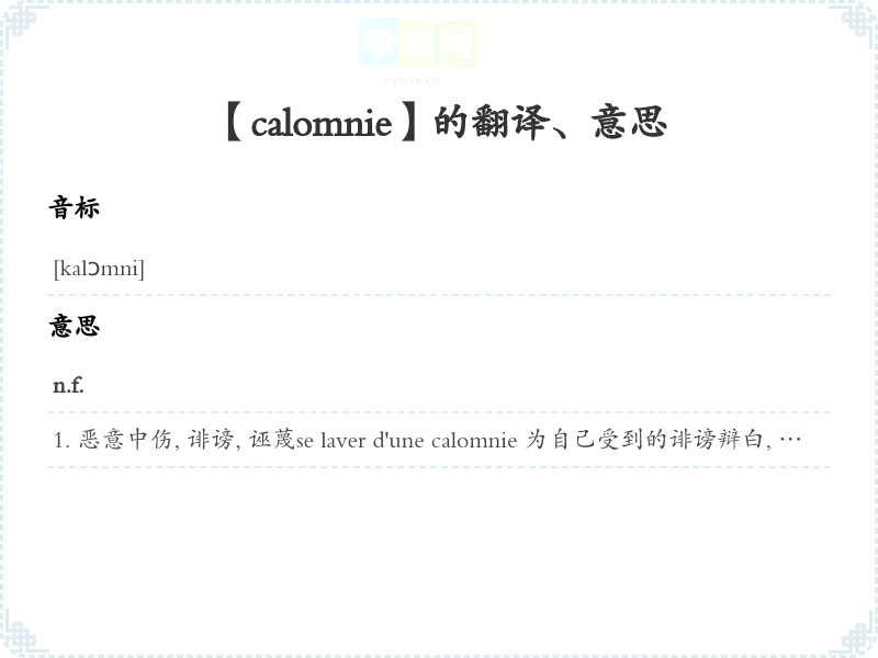 【calomnie】是什么意思、字义解释