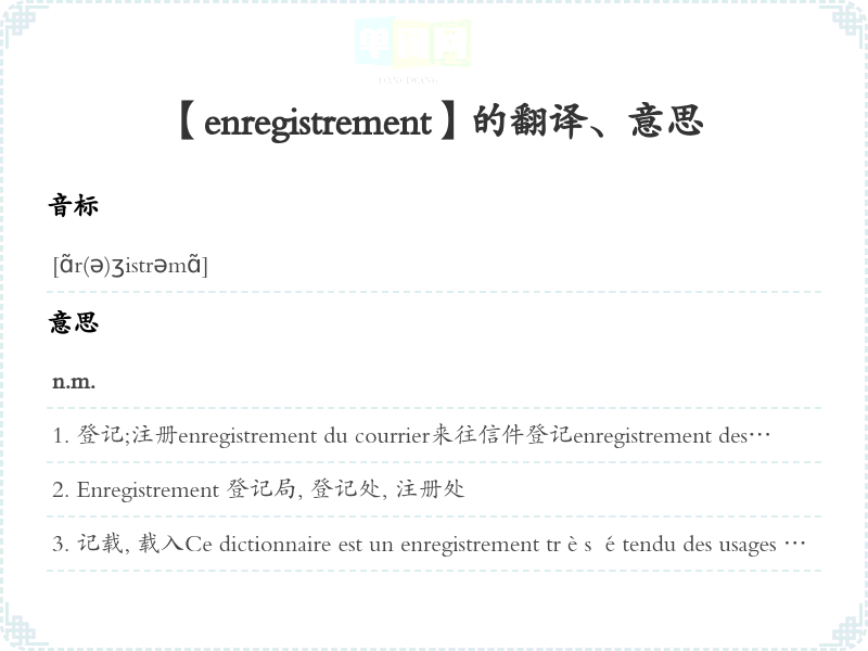 【enregistrement】是什么意思、字义解释