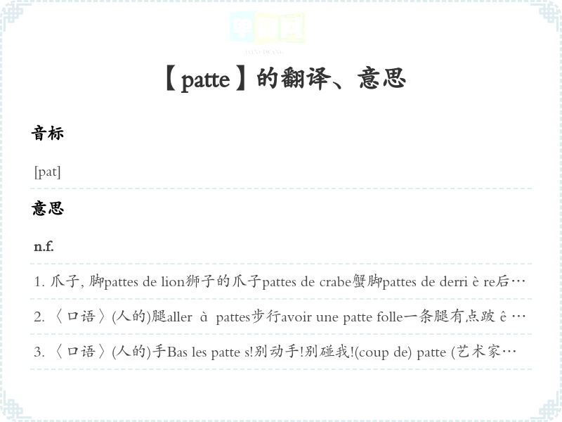 【patte】是什么意思、字义解释