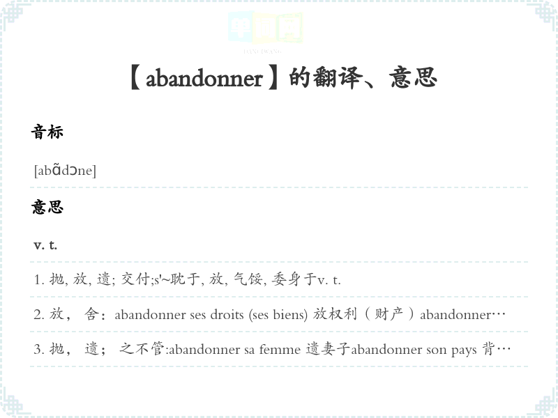 【abandonner】是什么意思、字义解释