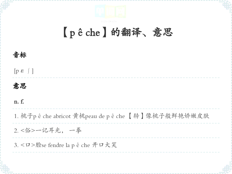 【pêche】是什么意思、字义解释