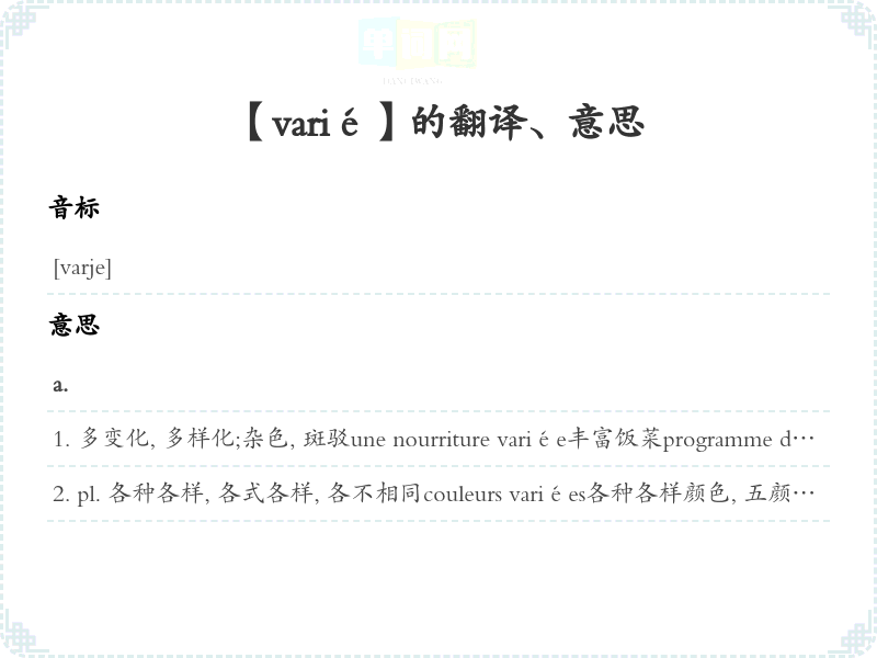 【varié】是什么意思、字义解释