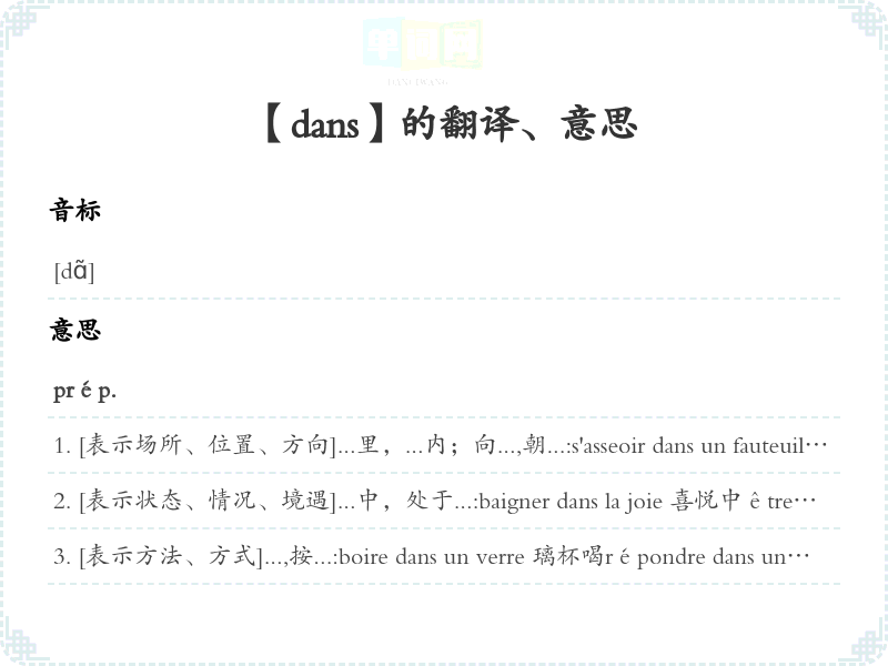 【dans】 近义词、 反义词、 同音、近音词 联想词