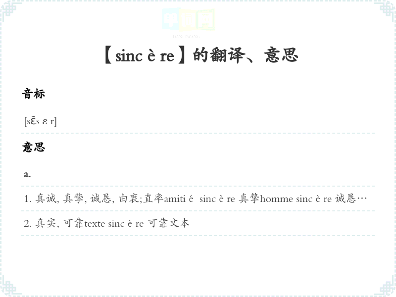 【sincère】是什么意思、字义解释