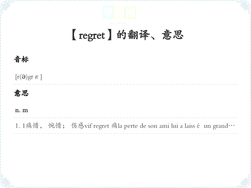 【regret】 联想:、 近义词:、 反义词: 联想词
