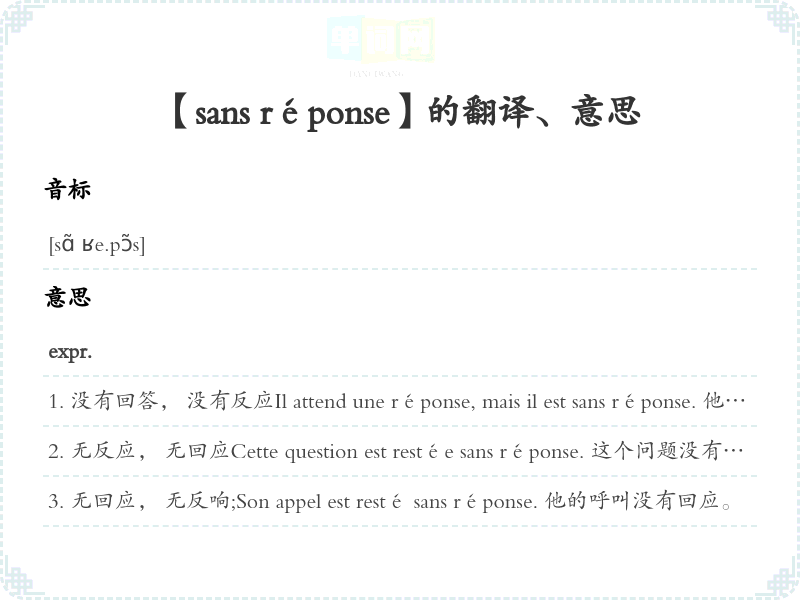 【sans réponse】是什么意思、字义解释