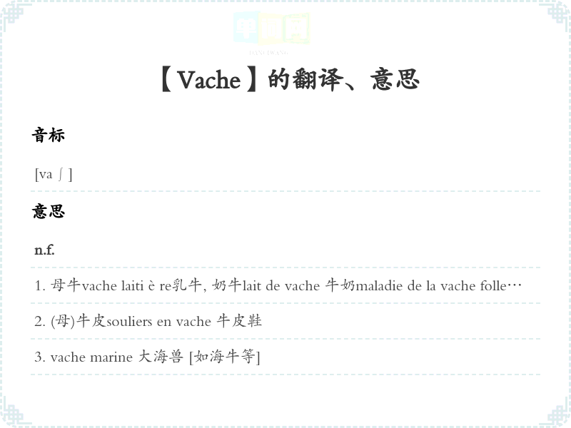 【Vache】是什么意思、字义解释