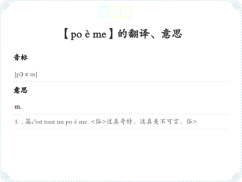 , 篇c'est tout un poème. <俗>这真奇特。这真美不可言。俗>