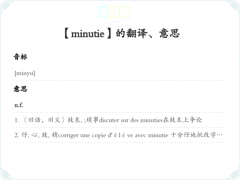 〈旧语,旧义〉枝末, ;琐事discuter sur des minuties在枝末上争论