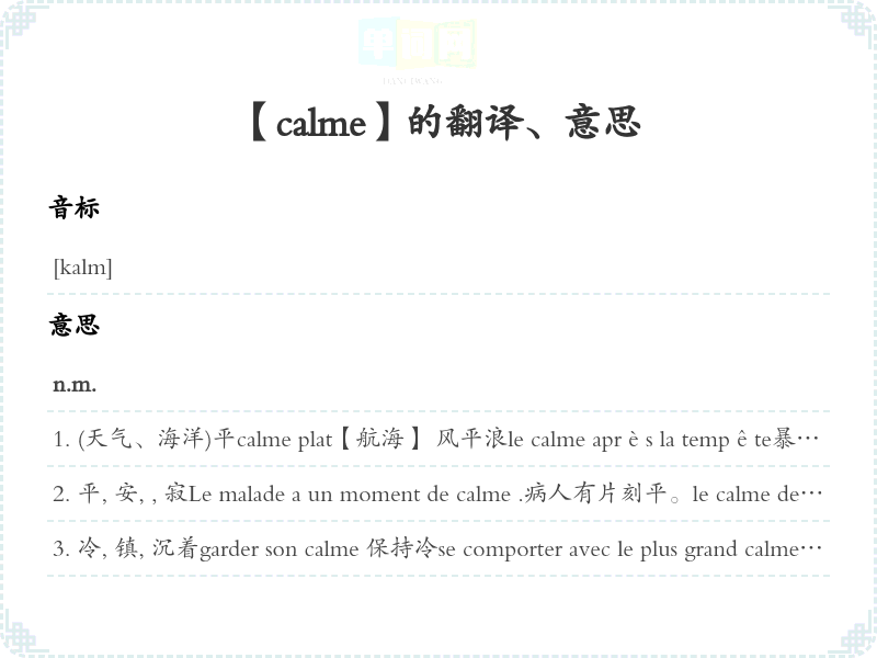【calme】是什么意思、字义解释