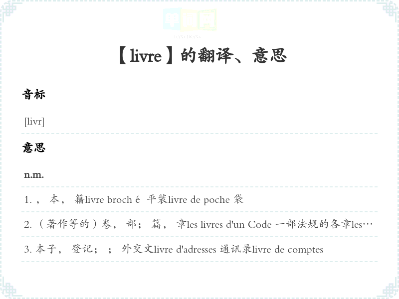 【livre】是什么意思、字义解释