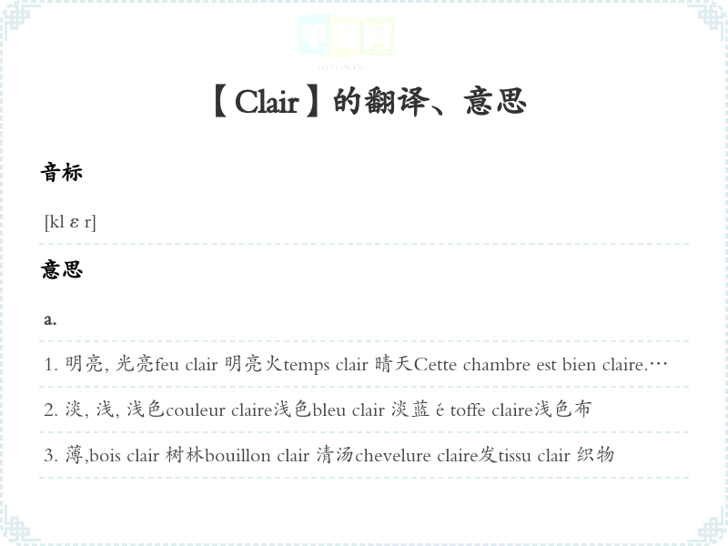 【Clair】是什么意思、字义解释