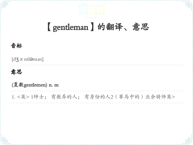 【gentleman】是什么意思、字义解释