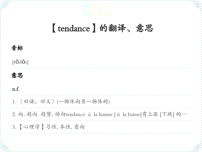 【tendance】是什么意思、字义解释