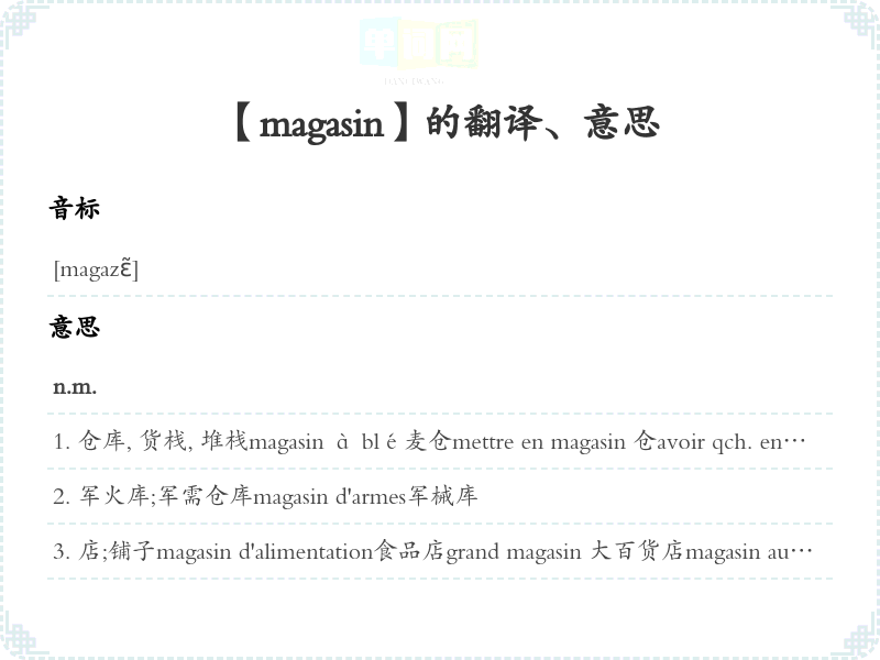 【magasin】是什么意思、字义解释