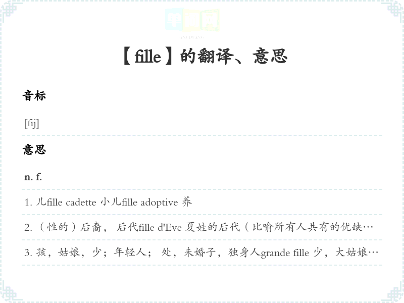 【fille】是什么意思、字义解释