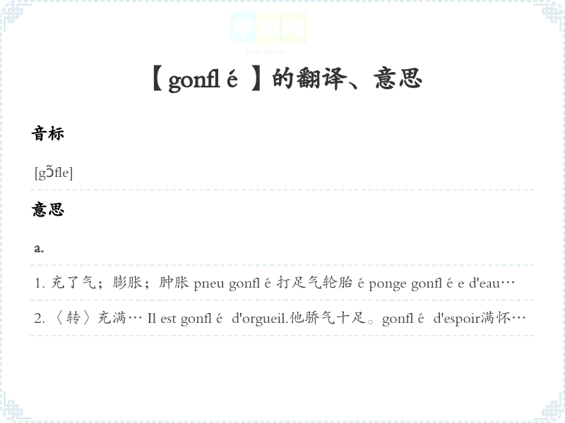【gonflé】 近义词:、 反义词: 联想词