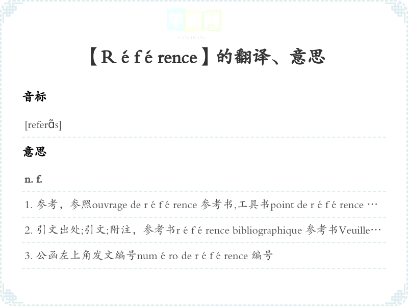 【Référence】是什么意思、字义解释