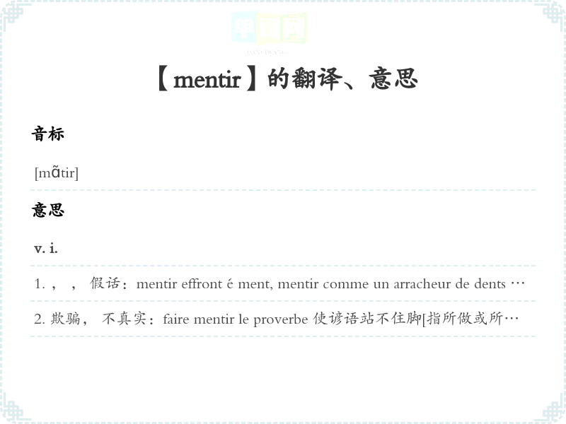 【mentir】是什么意思、字义解释