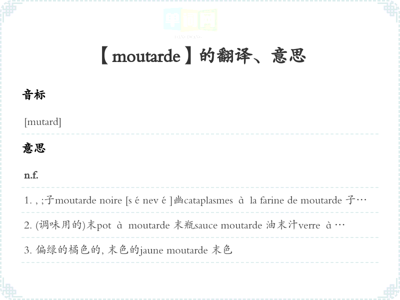 【moutarde】是什么意思、字义解释