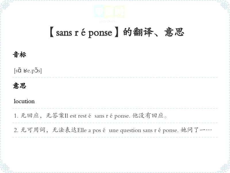 【sans réponse】是什么意思、字义解释