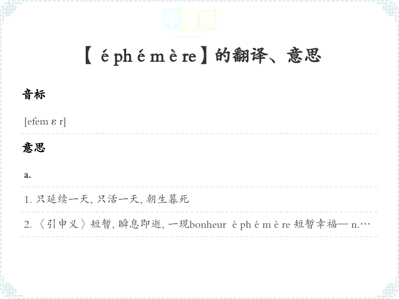【éphémère】是什么意思、字义解释