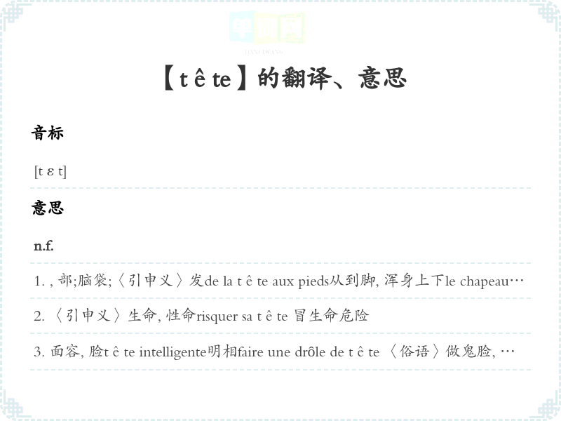 【tête】是什么意思、字义解释