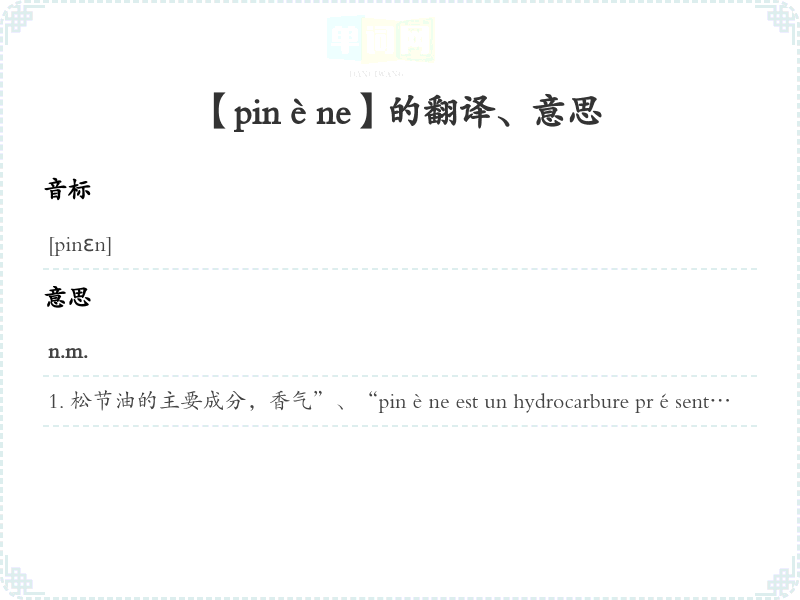 【pinène】是什么意思、字义解释