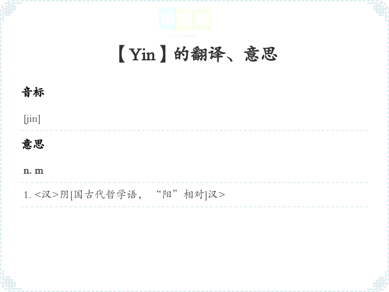<汉>阴[国古代哲学语, “阳”相对]汉>