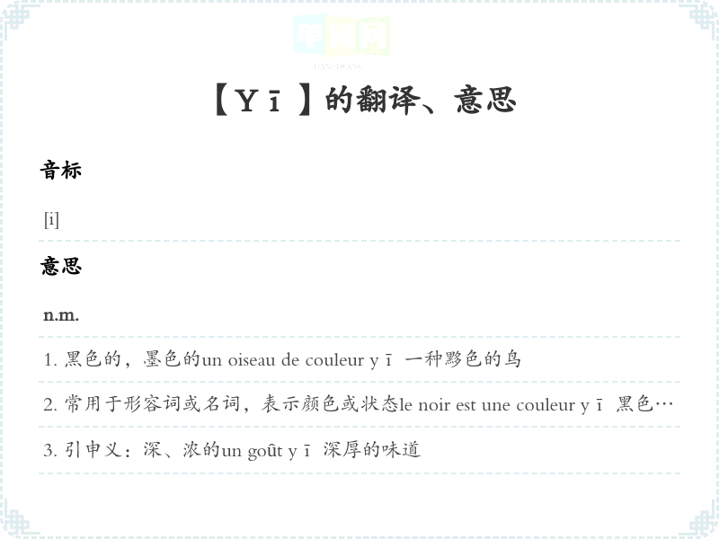黑色的,墨色的un oiseau de couleur yī 一种黟色的鸟