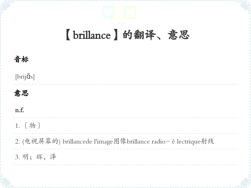 【brillance】是什么意思、字义解释