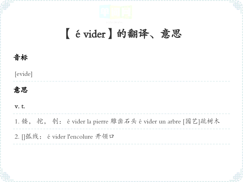 镂, 挖, 刳:évider la pierre 雕凿石头évider un arbre [园艺]疏树木