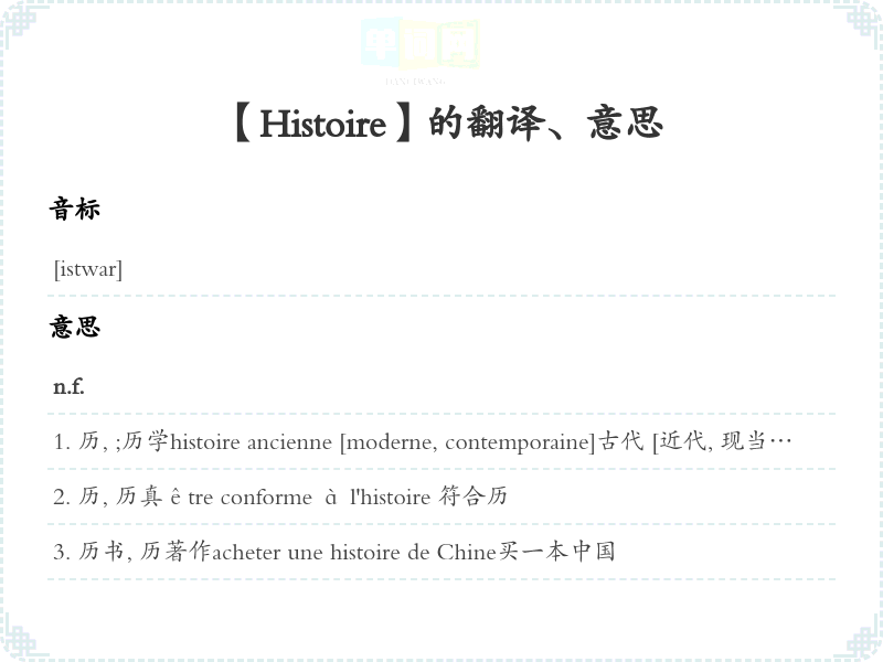 【Histoire】是什么意思、字义解释
