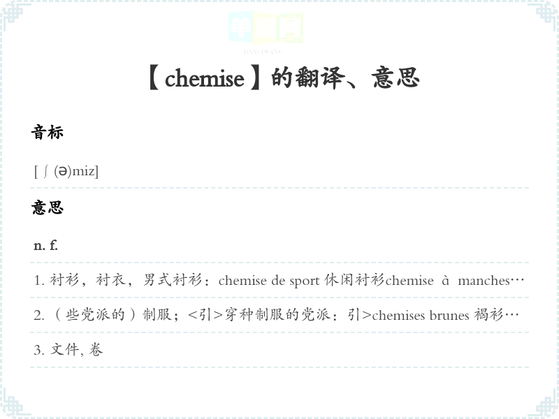 【chemise】是什么意思、字义解释