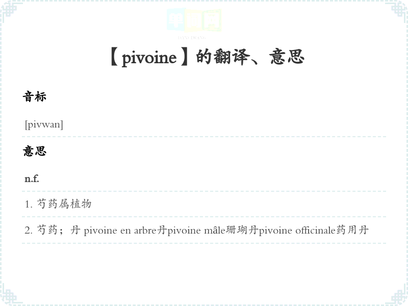 【pivoine】是什么意思、字义解释