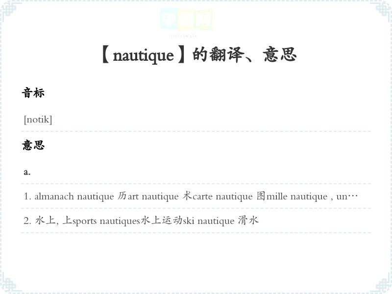 【nautique】是什么意思、字义解释