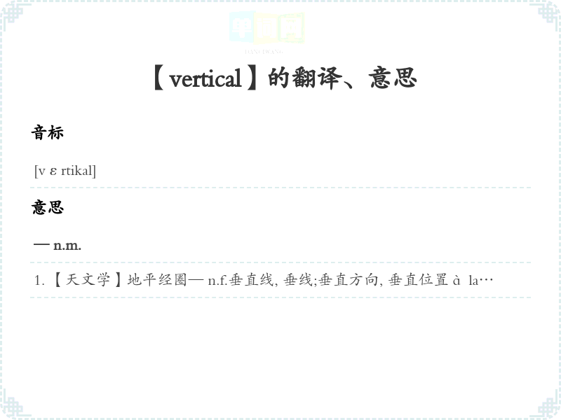 【vertical】是什么意思、字义解释