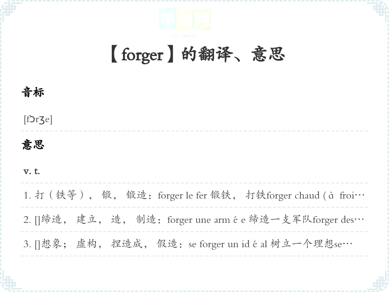 【forger】 联想:、 近义词:、 反义词: 联想词