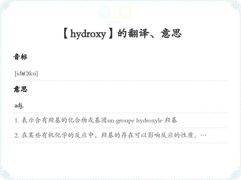 【hydroxy】是什么意思、字义解释