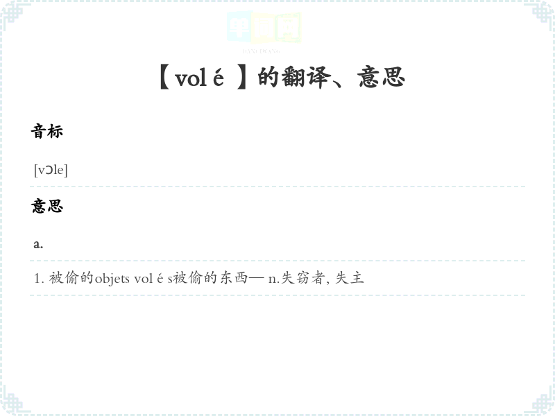被偷的objets volés被偷的东西— n.失窃者, 失主