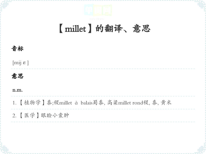 【millet】是什么意思、字义解释