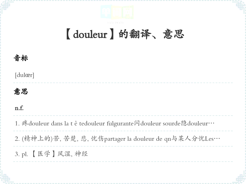 【douleur】是什么意思、字义解释