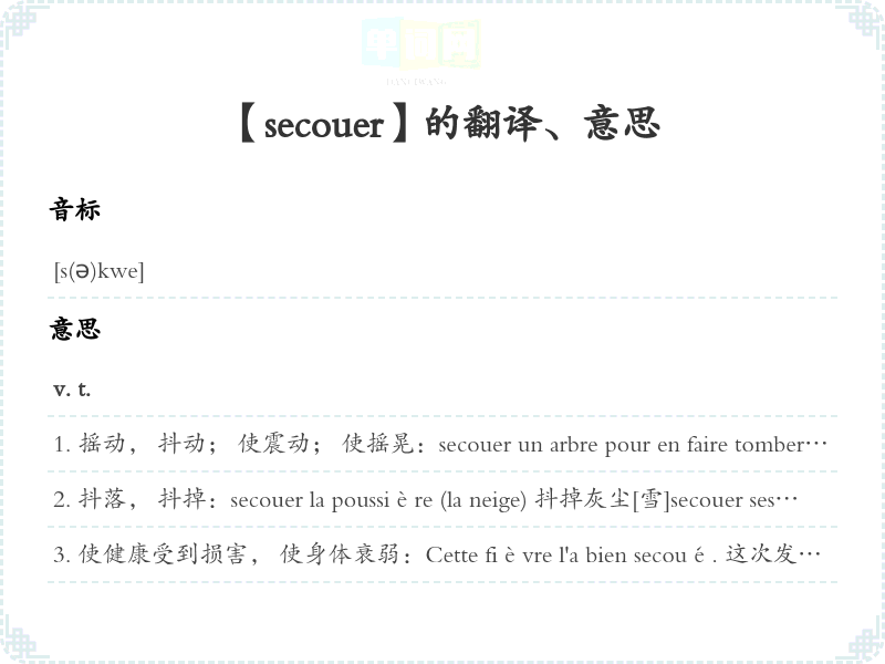 【secouer】 联想:、 近义词:、 反义词: 联想词