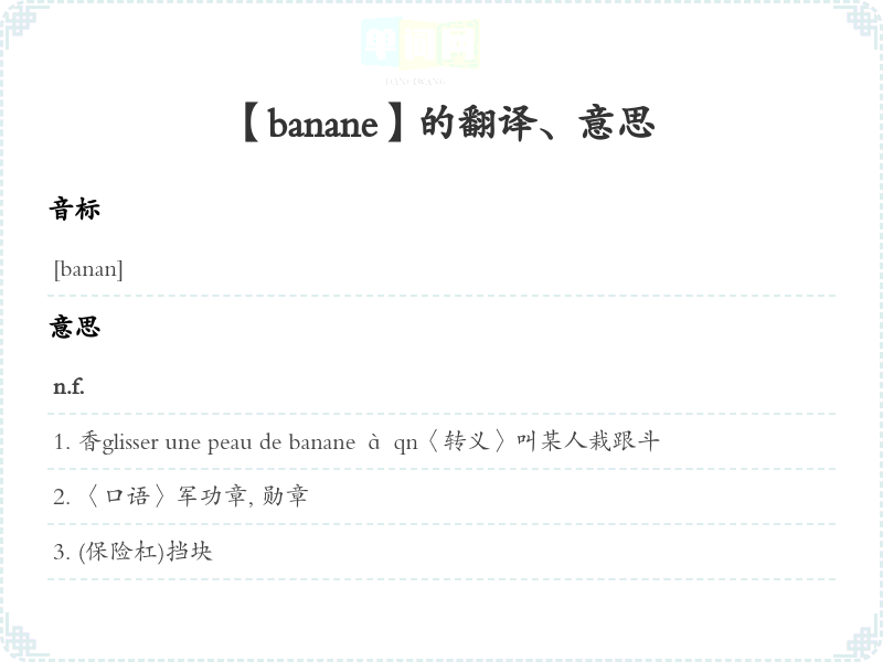 香glisser une peau de banane à qn〈转义〉叫某人栽跟斗