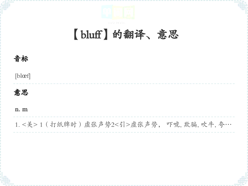 【bluff】 近义词:、 反义词: 联想词