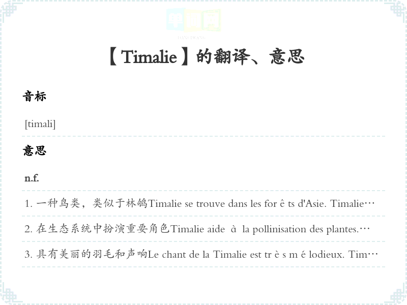 【Timalie】是什么意思、字义解释