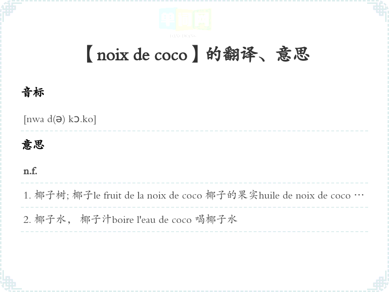 【noix de coco】是什么意思、字义解释