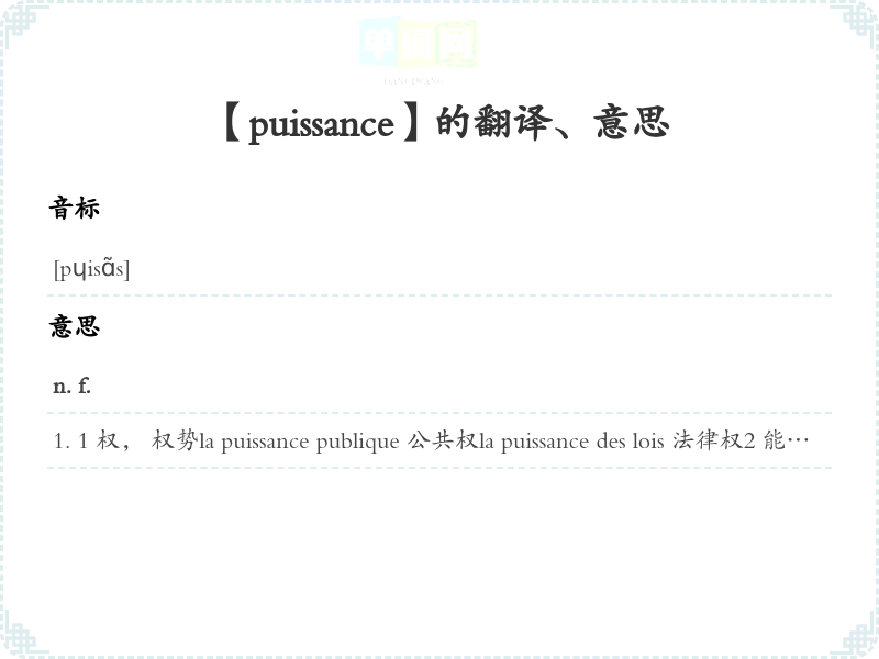 【puissance】 联想:、 近义词:、 反义词: 联想词
