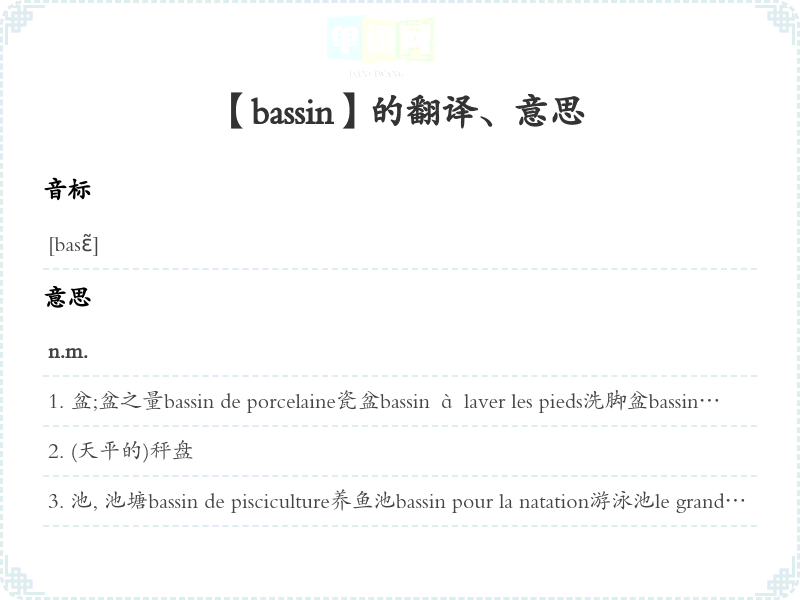【bassin】是什么意思、字义解释